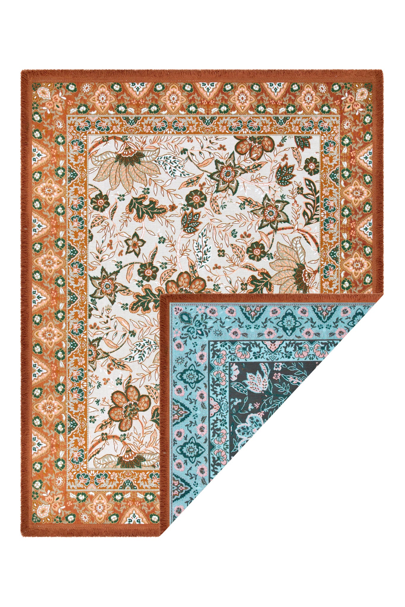 Please note, the colours and design are created by weaving primary colours of yarn together. The colours and design have not been printed on the rug. The woven method creates the effects of the colours we mention.