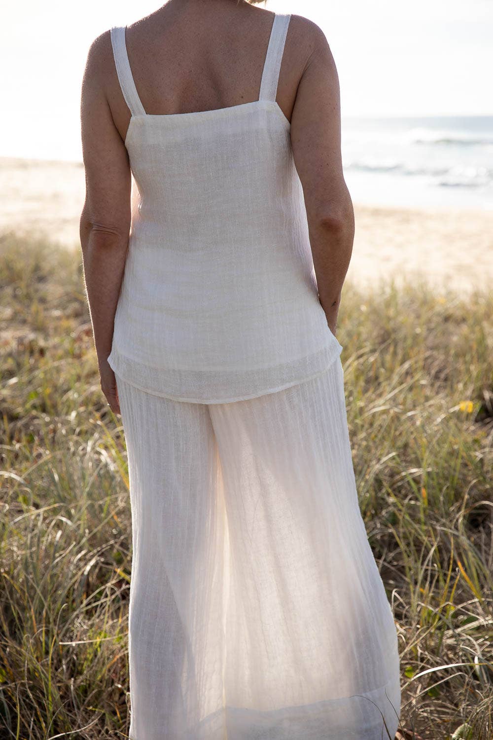Crafted from luxe lightweight exclusively developed gauze linen fabric, renowned for its exceptional softness and graceful drape on the body.
